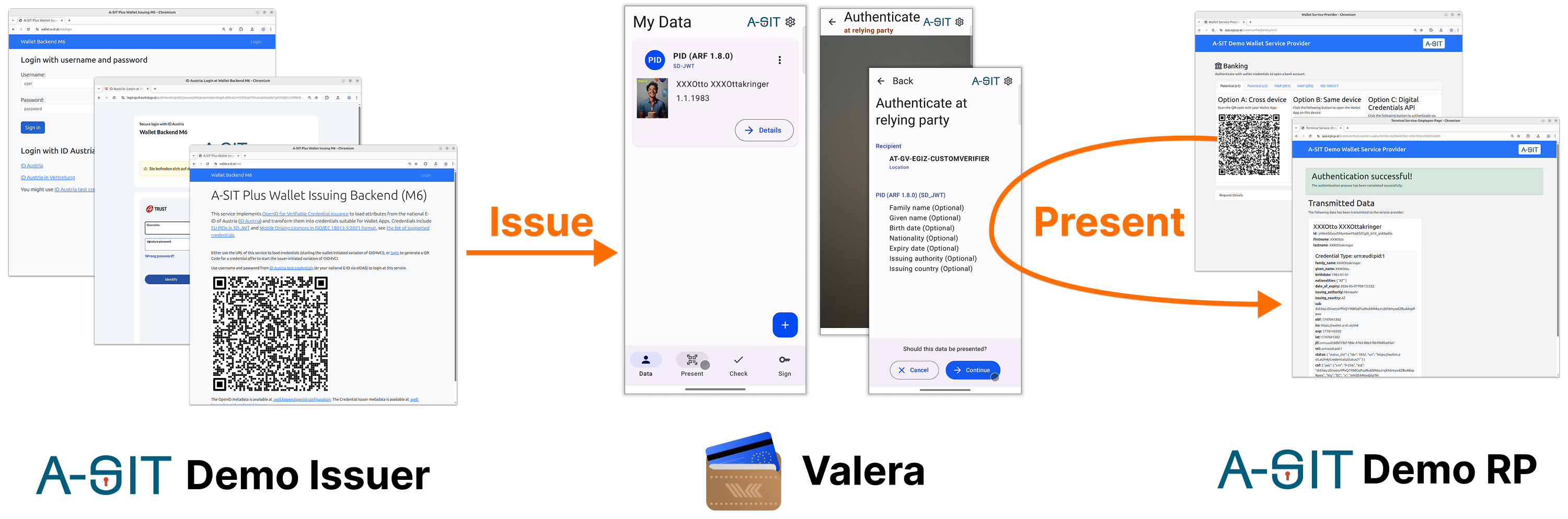 Visit A-SIT Plus Open Source to have a look at the libraries powering the services mentioned above, in particular Signum for cryptography and VC-K for the credentials. Check out our Wallet app Valera and a very simple Relying Party Demonstrator too.